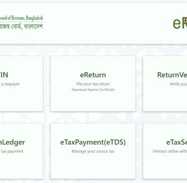 ক। etaxnbr.gov.bd এ প্রবেশ করার পর আপনি একটি স্ক্রীন দেখতে পাবেন যার বাম দিকে তিনটি মেনু দেখায়-