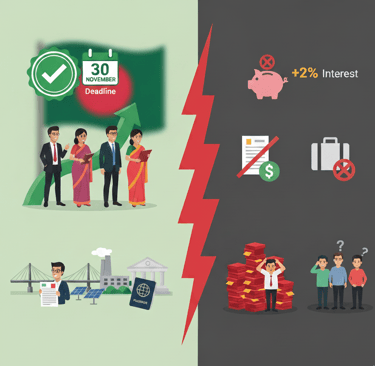 ২. অতিরিক্ত কর (Interest): বিলম্বিত রিটার্নের জন্য মাসিক ২% হারে অতিরিক্ত কর বা বিলম্ব সুদ পরিশোধ করতে হতে পারে (ধারা ১৭৪)।