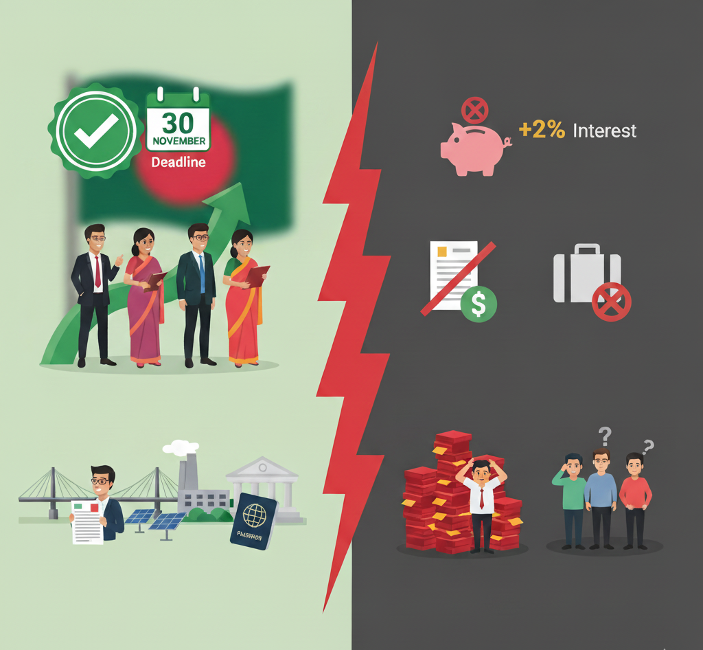 অতিরিক্ত কর (Interest): বিলম্বিত রিটার্নের জন্য মাসিক ২% হারে অতিরিক্ত কর বা বিলম্ব সুদ পরিশোধ করতে হতে পারে।